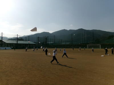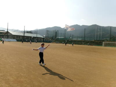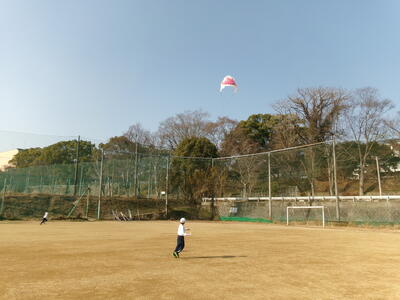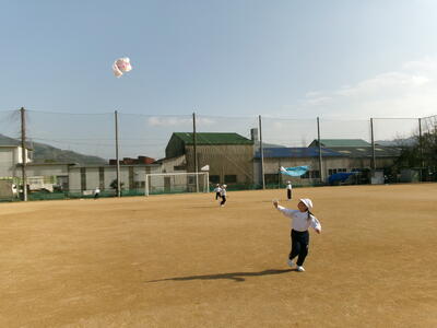 1年生が図工でつくった「たこ」をあげました。「たこたこあがれ・・・♪」と歌いながら、いっぱい走っていました。