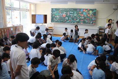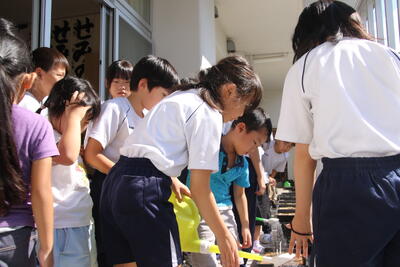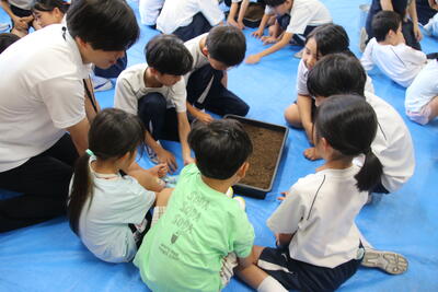 3年生がわかばこども園といっしょに「ビオラの花の種植え」をしました。植え方をやさしく教えてくれていました。