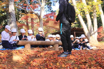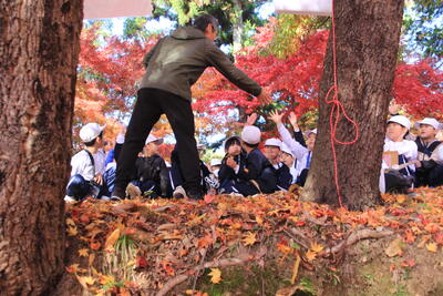 もみじ山探検 投稿: 管理者 (16:18) 1・2年生が「もみじ山」の探検に出かけました。ゲストティーチャーにもみじのことについて教えてもらい、どんぐりで「やじろべえ」をつくりました。きれいな紅葉の中、気持ちよく学習できました。 Tweet -