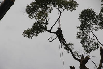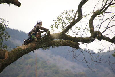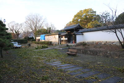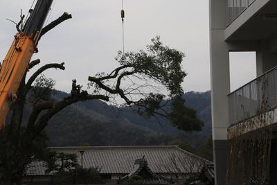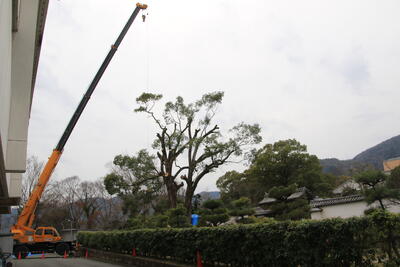 塀の修理のため、紙屋門近くの木が伐採されました。