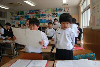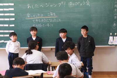 あしたへジャンプ 投稿: 管理者 (16:40) 2年生が生活科で「できるようになったこと。がんばったこと」を発表しました。九九が言えるようになったよ。なわとびができるようになったよ。納豆が食べられるようになったよ。・・・たくさんできるようになっています。 Tweet -