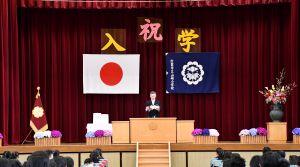 新入生が元気に入場し、大きな声で返事をし、がんばって椅子に座って話を聞き、無事に式を終えました。